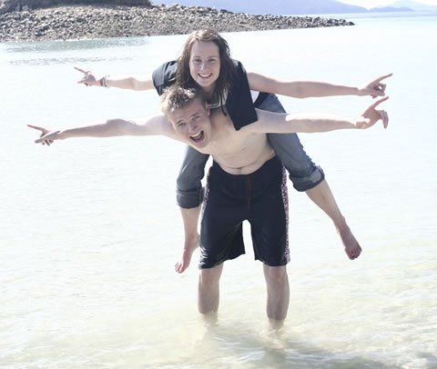 Yesterday we took another early bus over to the cruise terminal and caught the boat to Hamilton Island. This large island resort is the biggest in the Pacific, and the only way to get around is by the golf buggies. The island has some stunning beaches and there was plenty of time to check out most of the island roads in the two hours we had before having a BBQ back on the boat and heading over to Whitehaven Beach. Whitehaven was voted Australia's best beach this year, and it's 6km of pure white silica sand squeaks underfoot. It's pretty impressive. We bathed, played ball and got buried before taking a sunset ride back to the mainland. A quick shower and we were back on the road in Eric, starting the final push to Cairns.