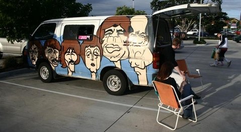 Just after we were thinking that we might have to pay for another night's accommodation in Brisbane, Andrew turned up on the scene and we spent the evening wallowing in his apartment with a few bottles of red wine. The next morning we were up and off to pick up our van, Eric. Eric has an interesting paint-job, not everyone in Brisbane drives around with the Beatles, Mick Jagger & Keith Richardson, Jimmy Hendrix, GW Bush, Dick Cheney, Osama Bin Laden, Ozzy Osbourne and some other bloke we can't work out plastered over their vehicle exterior. Photos will follow.