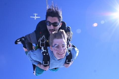 We went up in a little 10 seater, up to 14,000 ft and dropped for 70 seconds of free-fall. The sky had been a little cloudy, but the guy who jumped with me (Albi) said that only added to the thrill. Apparently it shows you just how fast you are travelling, but I didn't really see much of the cloud as we shot through it at 200kph. Brilliant.